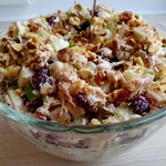 Легкий, сочный, с фруктово-ягодными нотками, салат придется по вкусу прекрасной половине. Расписывать о достоинствах не буду - предлагаю дегустацию. Знаю, что стебель сельдерея любят не все, но если его заменить, будет совсем другой вкус салата - решать вам. Пробуем?