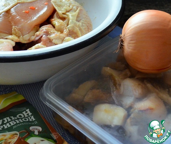 - Бульон (1,5-2 ст. л. грибной домашний от ТМ Роллтон) — по вкусу