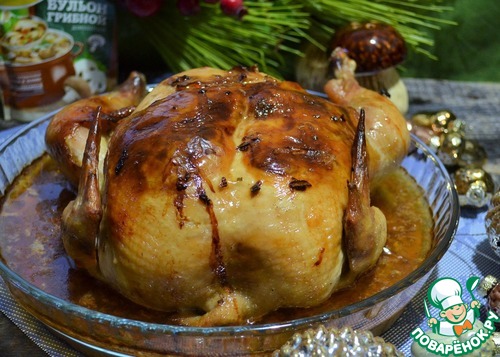 Ещё один вариант курицы в духовке. Минимум продуктов, легко и просто готовить. Разные яркие вкусы - домашняя курица, белые грибы и ароматный сухой бульон - отлично дополняют друг друга. Рекомендую.