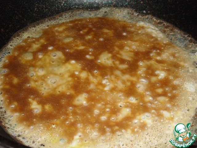 Хорошо разогреваем антипригарную сковороду. Наливаем на нее половину приготовленной яичной смеси. Вращаем сковороду, равномерно распределяя яичную смесь. Обжариваем в течении 1-2 минут с одной стороны.