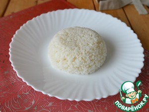 Готовим рассыпчатый рис по инструкции на упаковке вашего риса. Я свой рис тщательно промыла, залила водой на одну фалангу выше риса, посолила. Готовила в сковороде с высокими бортами. Довела до кипения и варила 15 минут, далее огонь отключила, оставила на плите, накрыла сверху полотенцем. Оставила на 20 минут. Далее рис разрыхлила лопаткой.