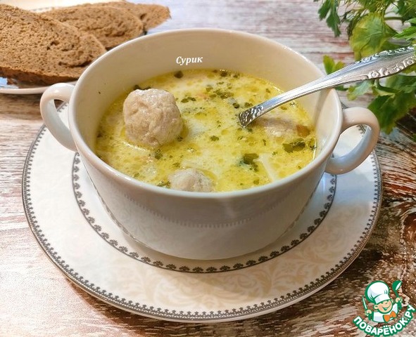 Домашний суп с фрикадельками и сыром