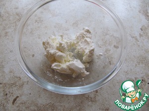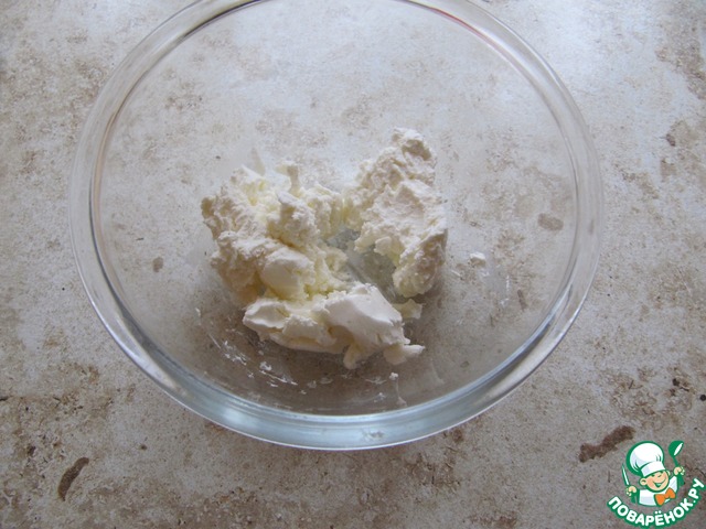 Перемешать натертый сыр, сливочный творожный сыр, майонез (по вкусу), для остроты можно добавить натертый зубчик чеснока.