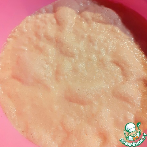 Опара: смешать кефир, кипяток, сахар, соль и дрожжи. Оставить на 10-15 минут