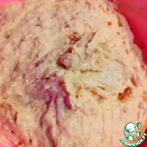 Добавить пшеничную муку и замесить тесто. Накрыть пленкой и оставить подниматься на 20 минут