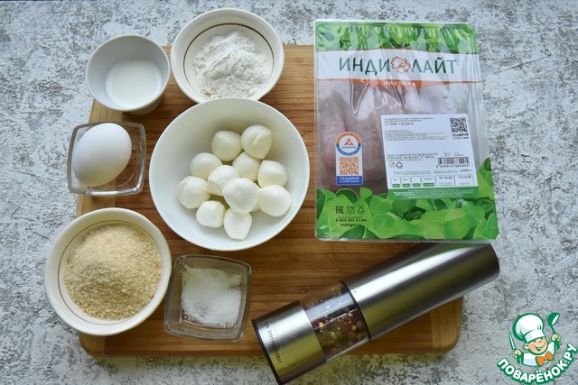 Ингредиенты для «Хрустящие шарики из индейки с моцареллой»: