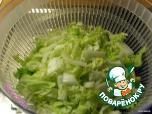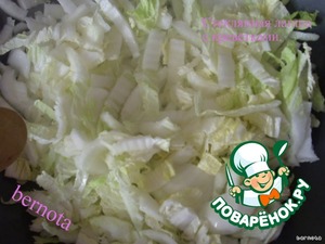 • В вок или в сковороду наливаем масло.Добавлем капустку и жарим 8 мин.