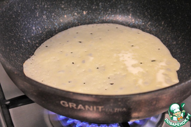 Испечь блин с одной стороны, перевернуть на другую сторону.