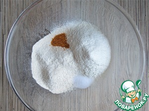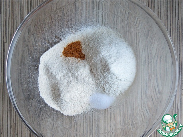 Для теста смешать пшеничную и цельнозерновую муку с солью и шафраном.