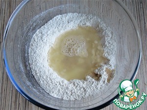Затем на рабочей поверхности руками замесить упругое тесто. Накрыть и оставить на 25-30 минут.