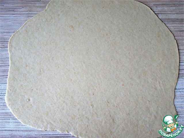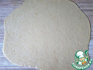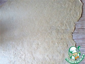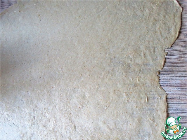 Смазать рабочую поверхность растительным маслом, раскатать тонко тесто, смазать хорошо маслом и оставить на 10 минут.
