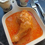 Курица, подаваемая с соусом –блюдо, которое появляется в самых первых эпизодах сериала «Аббатство Даунтаун». Сливочный соус придает курице бархотистый вкус, а паприка ароматное послевкусие. Рецепт из "Официальной кулинарной книги Аббатства Даунтаун" Энни Грей.