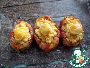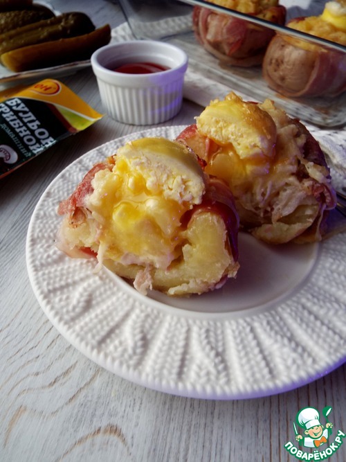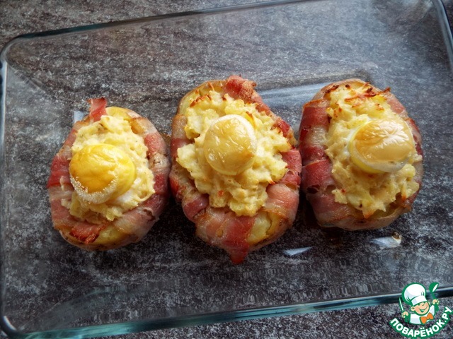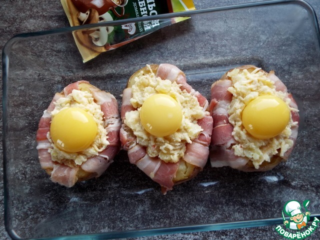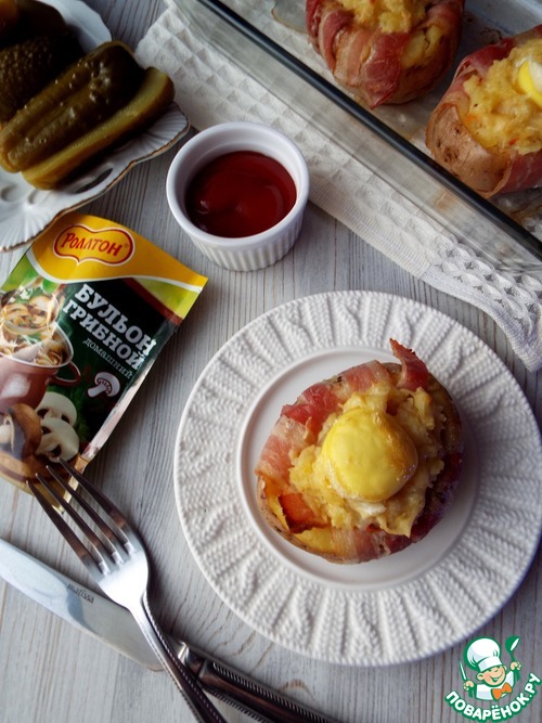 Если вы любите различные вариации запечённого картофеля, то вам обязательно понравится и такой вариант. Мягкая, рассыпчатая и очень ароматная лодочка, запечённая в беконе и украшенная желтком, будет превосходно смотреться на праздничном столе. Но можно и не дожидаться особого случая, а угостить своих домочадцев сытным ужином!