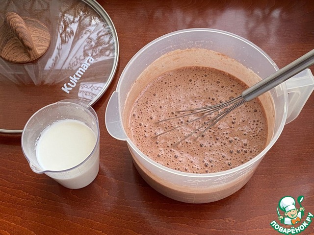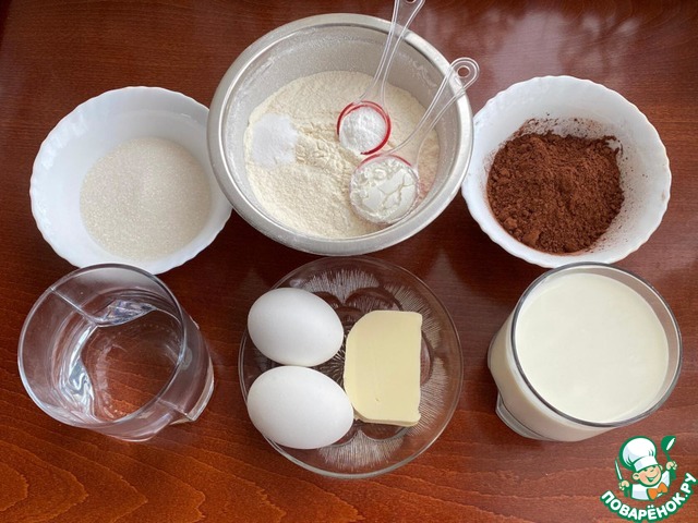 Пока ганаш остывает, приготовим шоколадные блины. Для этого подготовьте все необходимые ингредиенты.