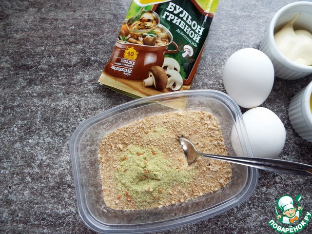 - Бульон (грибной, ТМ Роллтон) — 1 ст. л.