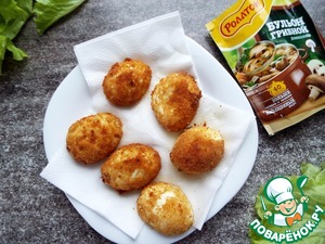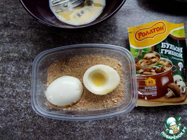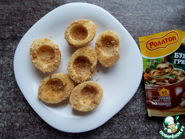 Фаршированные яйца делают с абсолютно разными наполнениями и это блюдо достаточно популярное и любимое. А вот, чтобы предварительно обжарить белковые лодочки в панировке, я такое не встречала и готовила впервые. Закуска приобрела новый интересный вкус! Начинка довольно простая и не требует больших затрат! Интересный факт! Не добавляя грибов, мы будем ощущать их присутствие и аромат!! В преддверии праздников, настоятельно рекомендую обратить внимание на эту оригинальную закуску.