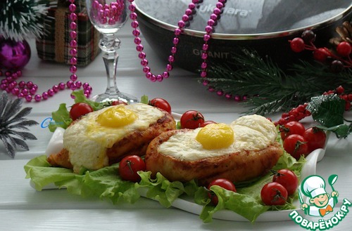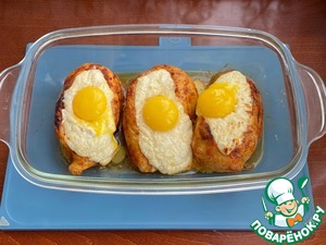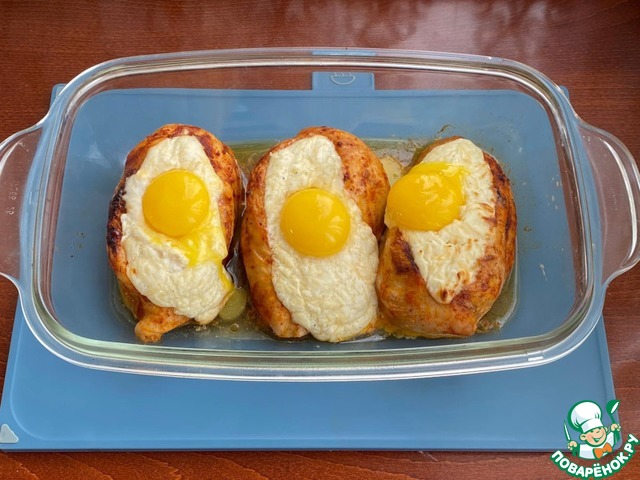 Поставьте грудки в духовку на 5 -7 минут, чтобы желток прогрелся и схватился.