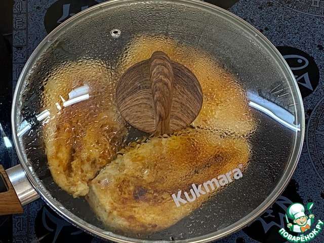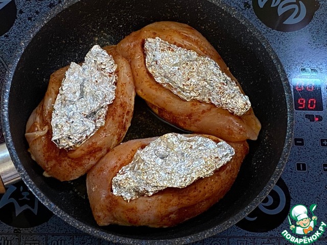 Когда перевернете грудки, накройте крышкой и потомите под крышкой 5 - 7 минут.