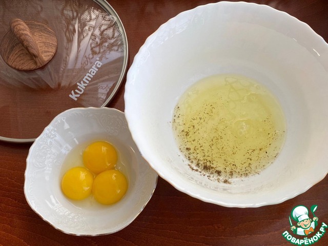 Пока грудки запекаются, подготовим начинку. Для этого разделите яйца на белки и желтки.