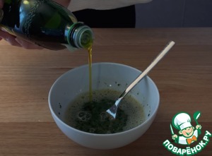 Добавить масло (у меня оливковое, но можно заменить на другое) и кипяток, все перемешать