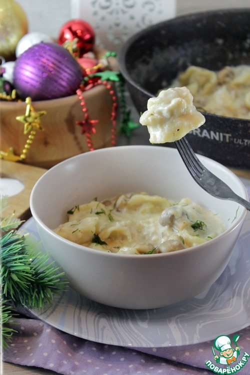 Рецепт «Пельмени в сливочно-грибном соусе»: