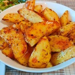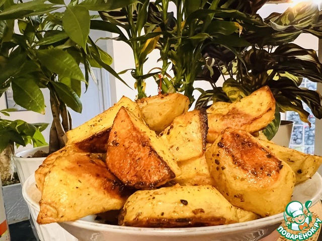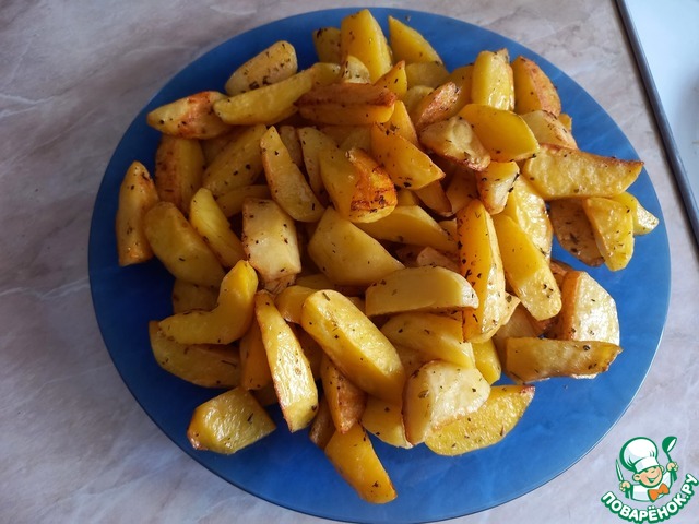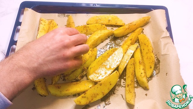 Потом картофель перекладываем на пергамент и отправляем в духовой шкаф при 180 градусах на 40 минут.