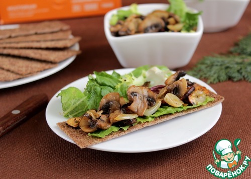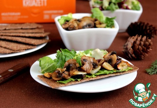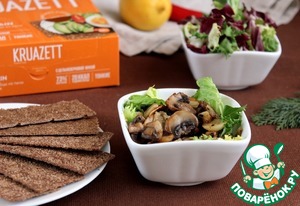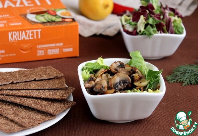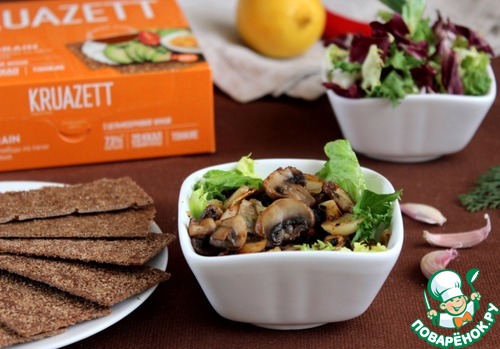 Это незатейливое, но очень вкусное блюдо из чеснока и грибов взято из испанской кухни. Чеснок в Испании едят с удовольствием и помногу, такая закуска предлагается в кафе и барах по всему Иберийскому полуострову. Испанцы традиционно ужинают поздно, а чтобы приглушить голод, они едят тапас - маленькие закуски в барах - и общаются за бокалом хорошего вина. Удивительно вкусная закуска, да в дуэте с хрустящими хлебцами Kruazett от неё оторваться невозможно!