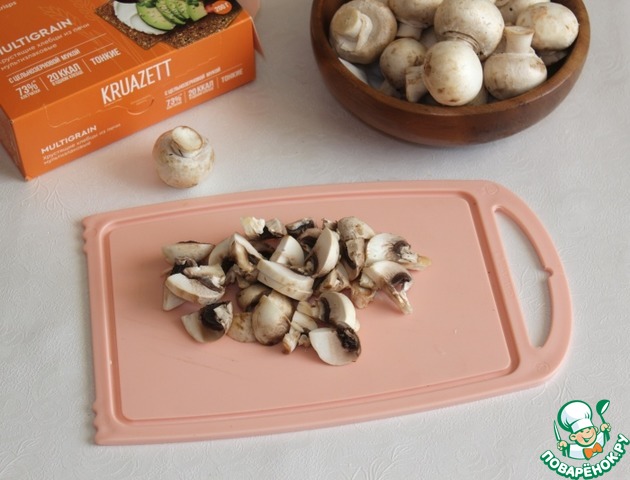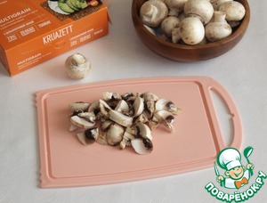 Шампиньоны протрите влажной салфеткой и нарежьте ломтиками.