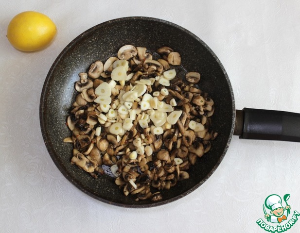 Выложите в сковороду грибы, сбрызните лимонным соком, посолите и, постоянно помешивая, готовьте 8-10 минут - пока грибы не станут мягкими.