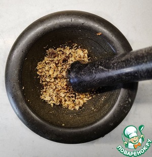 И растолочь их. Посыпать орехами салат. Украсить можно веточками укропа.