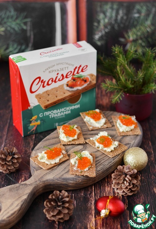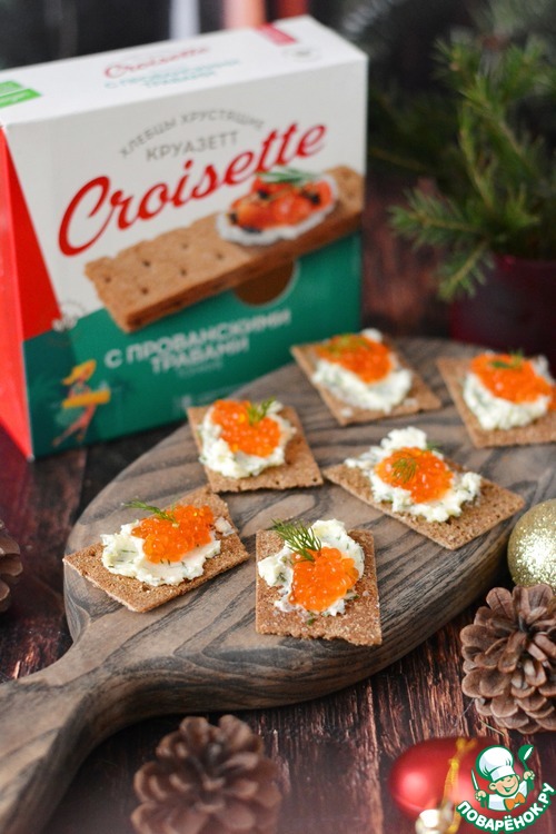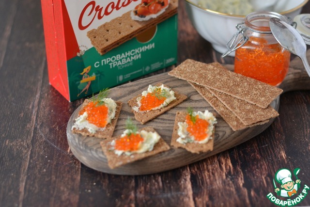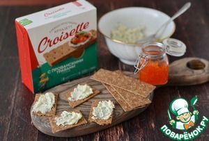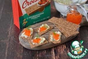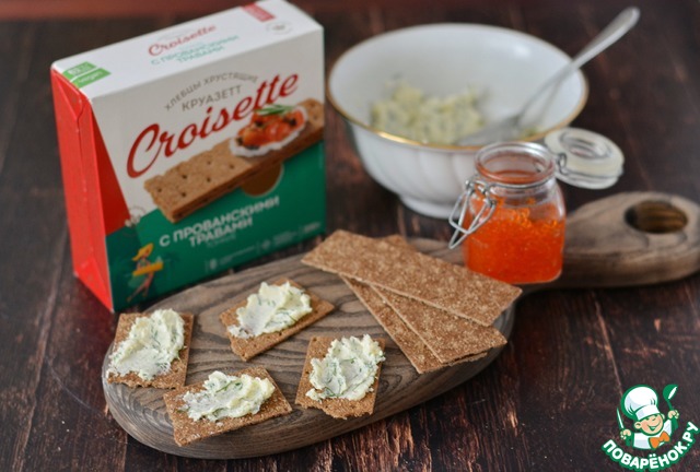 Хлебцы я взяла с прованским травами, аромат у них тонкий, не агрессивный и не перебьёт вкус икры.