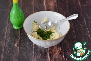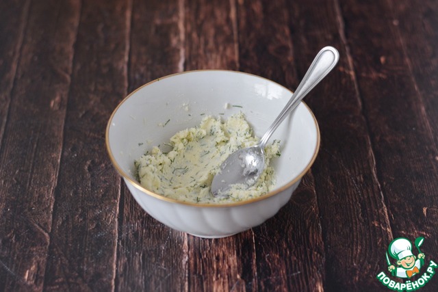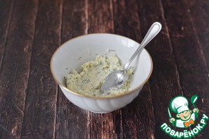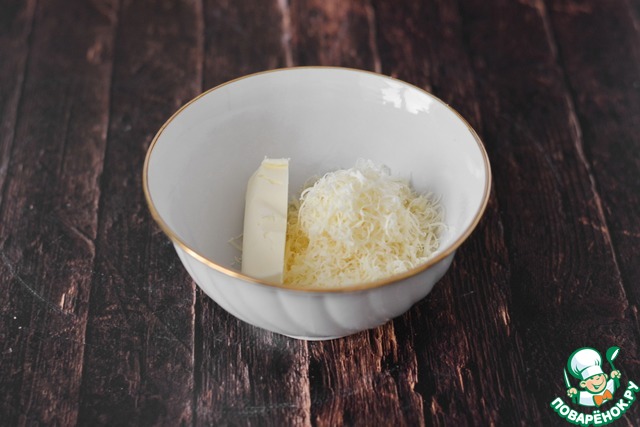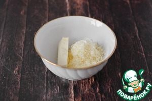 Сыр натрите на мелкой тёрке, добавьте к нему мягкое масло.