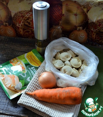 Ингредиенты для «Овощной суп с пельменями»: