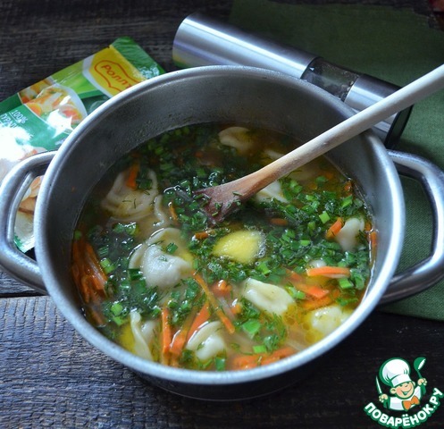 Овощной суп с пельменями