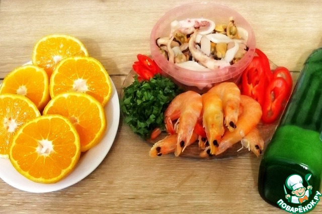 Ингредиенты для «Фарфалле с морепродуктами в цитрусовом соусе»: