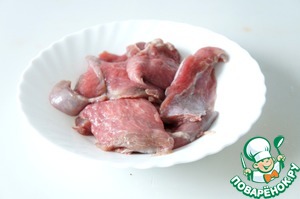 Если формочки, как у меня, небольшие, то мясо нарезаем на кусочки.