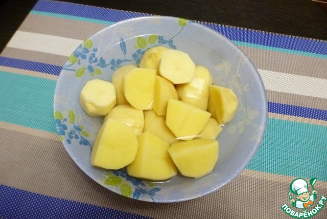 Картофель крупно нарезать. Я нарезаю на четыре части.