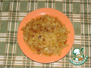 • Обжарить мелко нарезанный лук на подсолнечном масле до золотистого цвета. Посолить, поперчить.