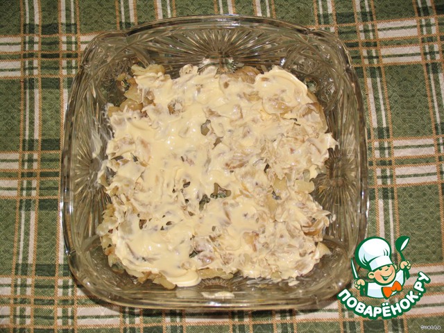 • 6-ой слой- обжаренный лук.