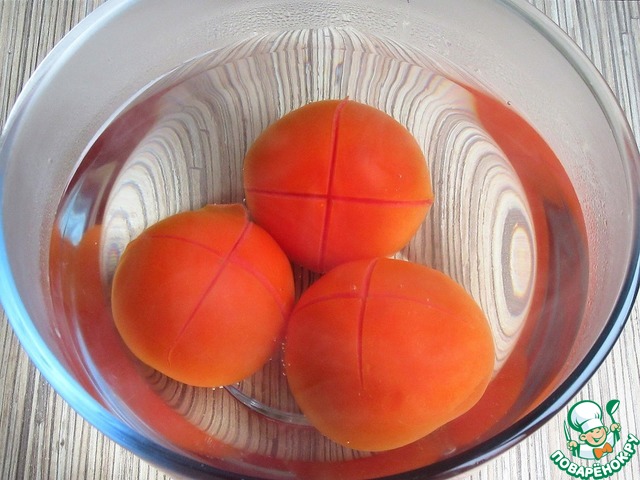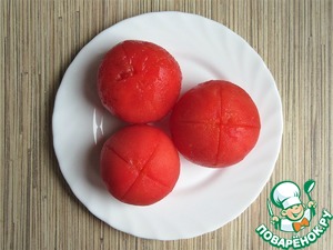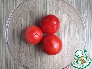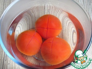 Надрежьте крестообразно кожицу у помидоров.