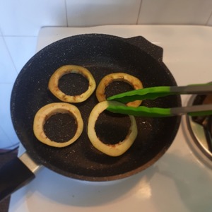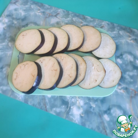 Обжарить до полуготовности кольца баклажан с двух сторон на растительном масле.