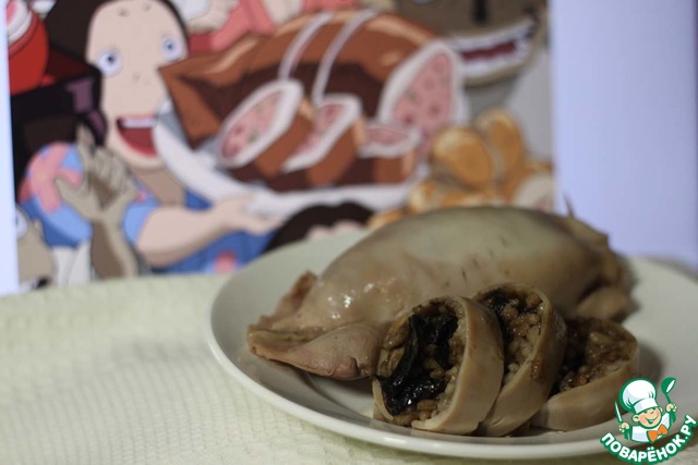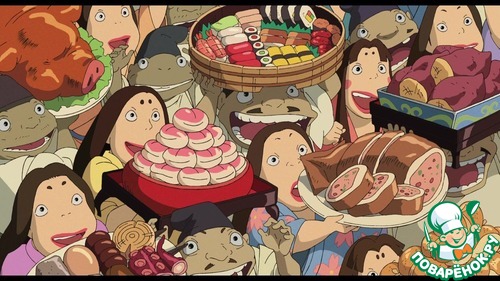 "Подумать только, какого размера кальмаров фаршируют!" - думала я, рассматривая эти кадры. В военные именно доступность кальмара сделала это блюдо необычайно популярным в Японии. Хаяо Миядзаки в "Унесённых призраками" очень большой упор сделал на традиции и уклад Японии. Я решила попробовать добавить в классическую рисовую начинку грибы - уж очень их люблю.