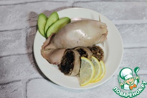 - Кальмар (тушки, предварительно очистить от шкурки, внутренностей и стилуса) — 3 шт