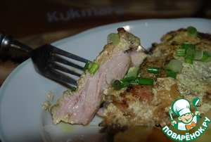 Готовить мне помогла моя новая помощница сковорода "Granit ultra". В ней очень равномерный нагрев и готовится все гораздо быстрее. Это очень легко и все получится даже у начинающей хозяйки. Натираем каждый кусок мясо солью и специями и обжариваем до аппетитных поджарок с двух сторон на раскаленной сковородке, смазанной растительным маслом. Выставите духовку на 180 градусов.