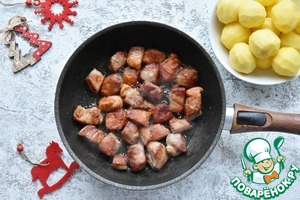 В сковороде обжариваю очищенный картофель до подрумянивания.