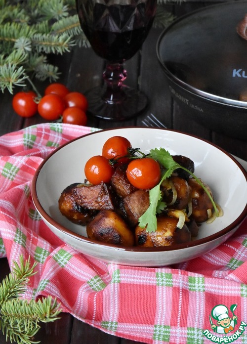 Один из самых волшебных дней в году, безусловно -Новый год. Предлагаю приготовить мясное блюдо в традициях гостеприимной и доброжелательной Грузии. Оджахури переводится как «семейное». Это сытное блюдо для всей семьи. В его состав входит мясо, грузинские специи, картошка. Чтобы его приготовить, используется специальная сковородка из глины. В моем случае с этой задачей отлично справится сковорода Kukmara Granit Ultra.