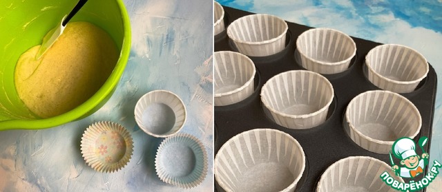 Подготовьте бумажные формочки под будущие капкейки. Они могут быть разные, смотрите примеры на фото. Но для удобства я также советую приобрести стальную форму, куда будет удобно разместить бумажные формы, а потом выложить тесто.