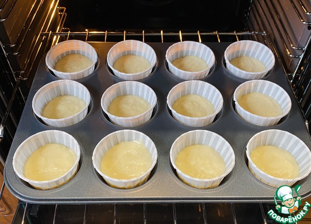 Надеюсь, вы включили свою духовку заранее на 175 градусов, чтобы к моменту распределения теста по формам, она полностью была нагрета. Ставите капкейки на 25-30 минут. Время зависит от духовки. Проверяйте готовность зубочисткой, она должна быть полностью сухой. -
