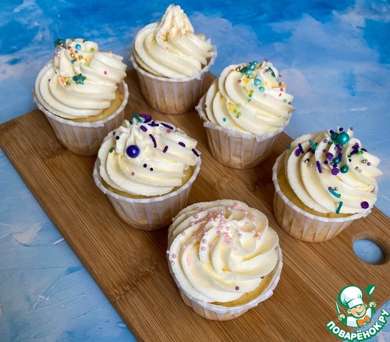 Рецепт «Капкейки с начинкой, украшенные кремом»: