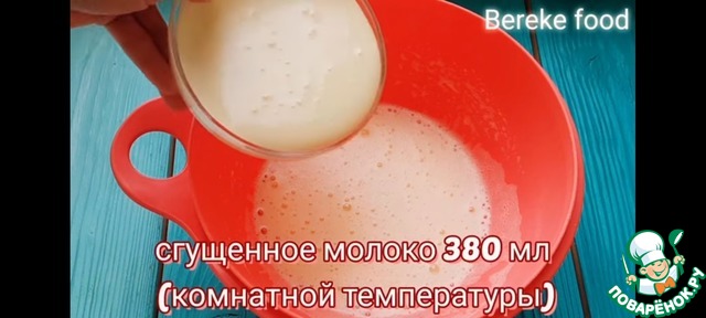 - Молоко сгущенное (380 мл комнатной температуры) — 1 бан.